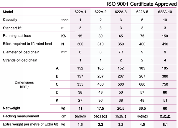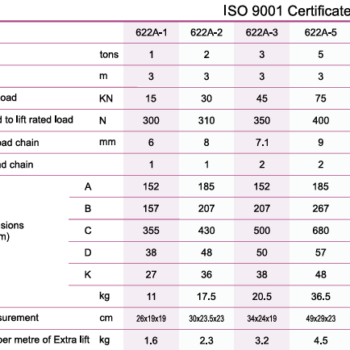 | Dimensi Rantai (Load Chain) | 6 mm x 18 mm x 1 |