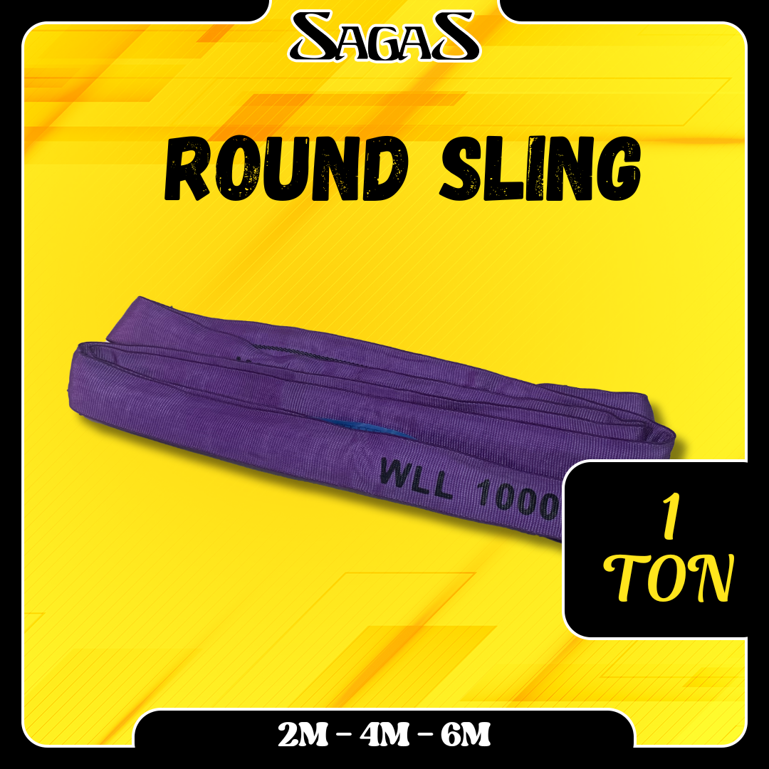 Round Sling Sagas 1 Ton merupakan pilihan utama bagi industri yang membutuhkan efisiensi dan keamanan tinggi dalam pengangkatan. Berbeda dengan webbing sling flat, Round Sling Sagas memiliki bentuk melingkar (bulat) yang memberikan distribusi beban lebih merata. Sesuai standar internasional, kapasitas 1 Ton ditandai dengan kode warna Ungu.