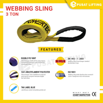 Webbing Sling 3 Ton POWERTEC, solusi terpercaya untuk mengangkut beban berat hingga 3 ton. Dengan konstruksi menggunakan bahan berkualitas tinggi, produk ini tidak hanya menawarkan daya angkut optimal, tetapi juga menjamin tingkat keamanan yang tinggi. Sebuah pilihan tak terbantahkan untuk tugas-tugas berat, menjadikannya investasi cerdas bagi mereka yang mengutamakan kinerja dan keamanan dalam setiap pengangkutan.