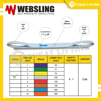 Webbing Sling 4 Ton WEBSLING pilihan terbaik untuk industri konstruksi, pergudangan, dan aplikasi pengangkutan berat lainnya. Dapatkan keandalan dan performa terbaik dengan memilih WEBSLING sebagai mitra pengangkutan beban Anda. Beli sekarang dan tingkatkan efisiensi operasional Anda!