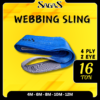 Dibuat dari material polyester pilihan, webbing sling ini memiliki kode warna ungu (Violet) sesuai standar internasional untuk kapasitas 10 Ton. Keunggulan utama material ini adalah sifatnya yang lembut sehingga tidak merusak permukaan benda yang diangkat (seperti mesin atau komponen halus), namun tetap memiliki Safety Factor tinggi. Desain lubang kaitnya (eye) dijahit dengan pola penguatan khusus guna mencegah robekan saat menerima beban puncak.