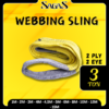 Dibuat dari material polyester pilihan, webbing sling ini memiliki kode warna ungu (Violet) sesuai standar internasional untuk kapasitas 2 Ton. Keunggulan utama material ini adalah sifatnya yang lembut sehingga tidak merusak permukaan benda yang diangkat (seperti mesin atau komponen halus), namun tetap memiliki Safety Factor tinggi. Desain lubang kaitnya (eye) dijahit dengan pola penguatan khusus guna mencegah robekan saat menerima beban puncak.